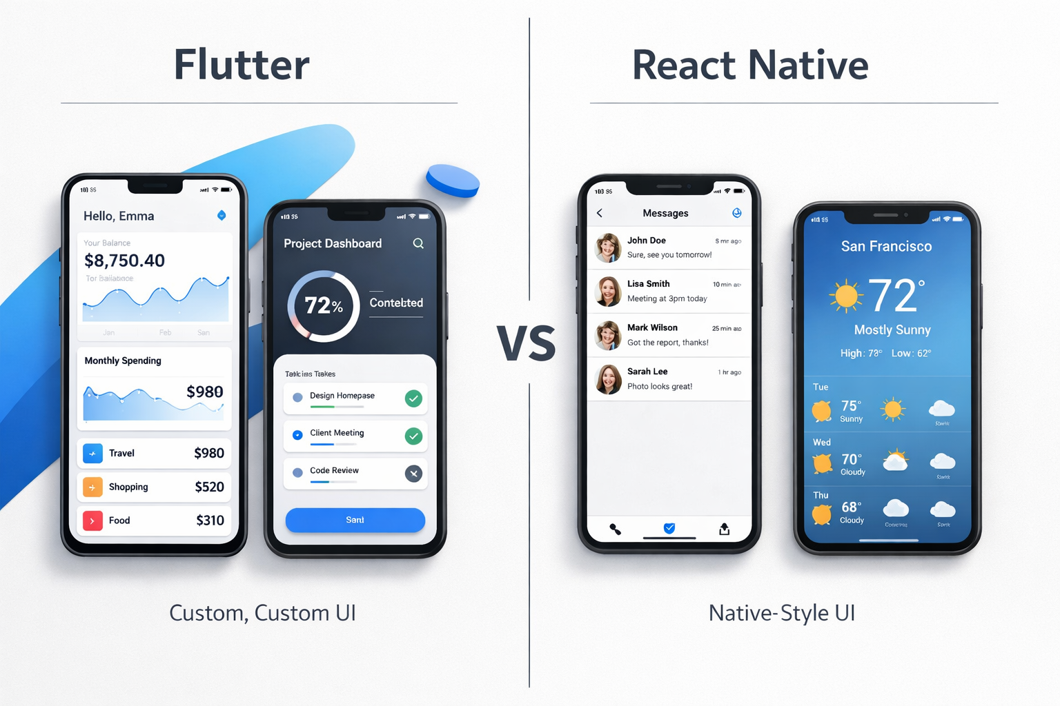 Flutter vs React Native in 2026: Complete Comparison for Startups (Performance, Cost & Hiring)